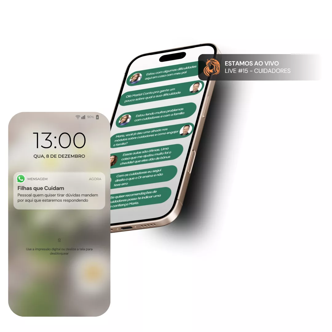 Ao entrar na Comunidade Filhas que Cuidam, você terá acesso imediato ao: grupo no WhatsApp